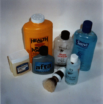Baby powder and baby lotion, shaping gel, after shave, petroleum jelly |