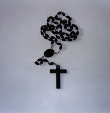 Father Stephen Walsh gave Gary this rosary. I found it in the pockets of the trousers when they handed me the clothing. I don't know if Gary wore the rosary around his neck during the execution or if he held it in his hand |