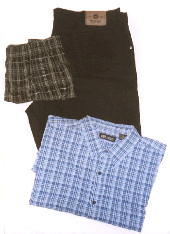 prison clothing, I bought some clothing I hoped Gary would like. I just imagined what he would like to wear if he would be free and I chose a blue-checkered shirt, black Wrangler jeans and boxers. After Gary got a stay in June I wore the shirt at one of our visits and Gary liked the shirt ... but of course he hated the occasion I bought it for |